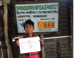 In this time ACID start education project in this village from 1st January,2015 and Mrimoy is also a sponsor children, studying regularly in the free tuition centre. ACID also provided free nuitrition food, toiletaries and regular health check up camps for all the sponsor children. Ardhendu Gayen, Teacher of this centre said "We conduct regular hand wash before take the meal and now Mrinmoy is the leader of his classmates for checking wheather anybody not washing their hand".