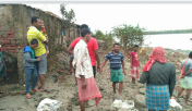 water reached their door-step. Next day morning, they found, their mud house in a crumbled situation. They have